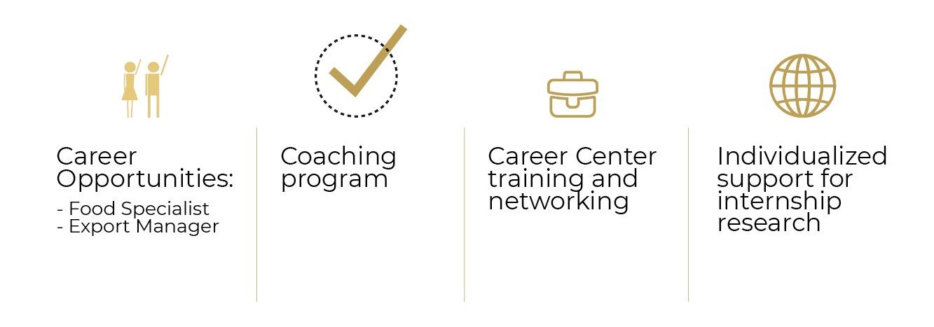 Our graduates can pursue roles such as Gastronomy and Food Specialist or Sustainable Tourism Promoter, working in areas of market analysis, international commerce, cultural mediation, and the public sector. The program also prepares students for management roles in international agencies, with a focus on import-export management and cultural diplomacy.